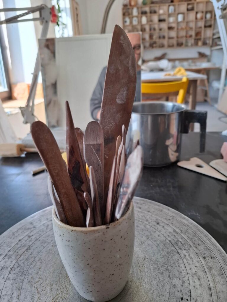 Vrátím se pár let zpátky, kdy jsem se začínala rozhlížet po keramickém světě a přestávaly mi stačit dvě tři keramické špachtle na modelování. Bylo to docela poetické – spousta nových pomocníků, kteří mi „zaručeně“ pomůžou dělat věci stejně dobře jako ti, které jsem obdivovala. Jasně, byla to iluze. Ale je fajn se inspirovat u kolegů. Někdy se stane, že mi jejich nářadí vůbec nesedí, ale občas  „narazím na poklad“. Nebo chcete-li perlu.